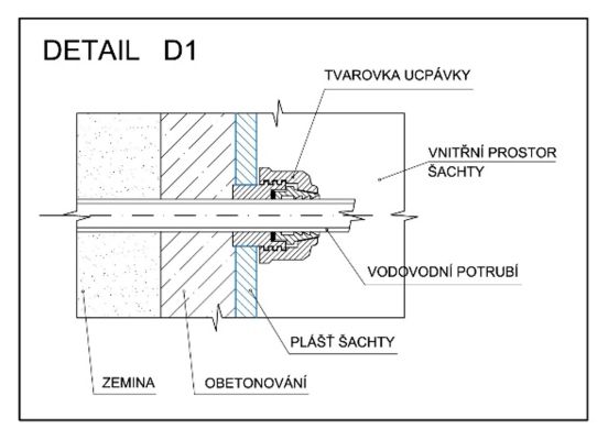 Šachta je hranatá nebo válcová, opatřená vstupní šachtičkou s poklopem a osazená vodotěsnými průchodkami, jejichž průměr závisí na přívodním potrubí. Přístup na dno šachty je po plastových stupadlech.