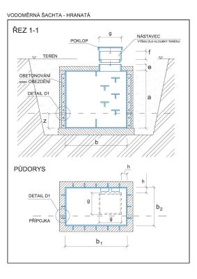 | Součástí ceny jsou stupadla, plastové víko 2x vodotěsný prostup DN 32 – DN 63 = dle stavby. |