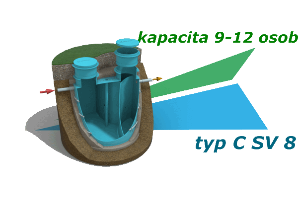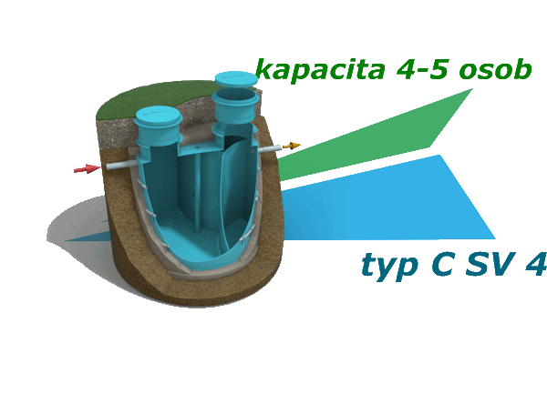 Tento typ septiku vyberte, pokud v místě usazení je propustné podloží ( písčité, štěrkové… ), bez výskytu spodních vod a nad nádrží bude travnatá plocha, protože nádrž je dimenzována pouze jako pochozí. Pokud nad nádrží uvažujete o zásypu zeminou s větší mocností než 30 cm, bude třeba strop nádrže „odlehčit“ extrudovaným polystyrenem.