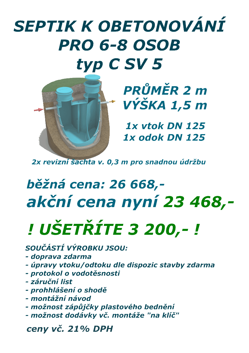 FIRST MINUTE PRO NAŠE SEPTIKY. VYUŽIJTE SEZÓNNÍ SLEVU A NAKUPTE VÝHODNĚJI O 12%